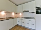 De halfopen keuken is uitgerust met de volgende inbouwapparatuur: een keramische kookplaat, koelkast, vaatwasmachine, combi-oven, vlakscherm afzuigschouw, kastruimte en inbouwverlichting.