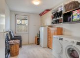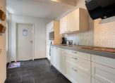Indeling: Entree / ruime hal / toilet met fontein / trapkast / meterkast / doorzonwoonkamer met plavuizenvloer / dichte keuken voorzien van kunststof aanrechtblad, inductiekookplaat, afzuigkap, combimagnetron, vaatwasser en koel-vriescombinatie / bijkeuken met verwarming en opstelling voor wasmachine en droger / de begane grond is geheel voorzien van een plavuizenvloer / fraai aangelegde achtertuin met achterom en een vrijstaande houten berging.