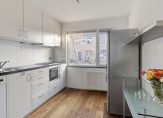 Indeling: Entree / hal met gemoderniseerde meterkast (13 groepen en 3 aardlekschakelaars) / toilet met inbouwreservoir en fontein / woonkamer met extra raam in de zijgevel, parketvloer en praktische voorraadkast / open keuken met composiet aanrechtblad voorzien van gaskookplaat, afzuigkap, combi-oven en vaatwasser / vanuit de woonkamer toegang tot de fraai aangelegde achtertuin met vrijstaande stenen berging en achterom.