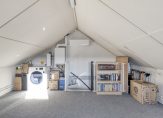 Zolder: Ruime zolderverdieping met opstelling voor wasmachine en droger, stookruimte (Intergas CV anno 2024), airconditioning en de omvormer voor de zonnepanelen (slaapkamer mogelijk).