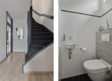1e verdieping: Overloop met vaste trap naar zolder / slaapkamer met vaste kast / ouderslaapkamer / slaapkamer met elektrisch rolluik en toegang tot het balkon / luxe badkamer met hoekbad, 2e toilet met inbouwreservoir, wastafelmeubel, douchecabine, designradiator en Velux dakvenster.