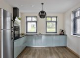 Indeling: Entree / hal trap naar 1 verdieping met upstairs trapbekleding en led verlichting / meterkast (9 groepen + 2x dubbele groep + glasvezel) / toilet met inbouwreservoir en fontein / uitgebouwde (1,20 m) woonkamer met keramische plavuizen + vloerverwarming, trapkast en openslaande deuren met hor naar de achtertuin / moderne ijsblauwe hoogglans open keuken met composiet aanrechtblad voorzien van grote combimagnetron, inductie kookplaat, afzuigschouw, vaatwasser en carroussel kast / onderhoudsvrije achtertuin, gelegen op het zuiden beschikt over een vrijstaande houten berging (2,5 m x 5 m) met elektra en een buitenkraan / garage met een d.m.v. een zender bedienbare elektrische kanteldeur en oprit voor 2 auto’s.