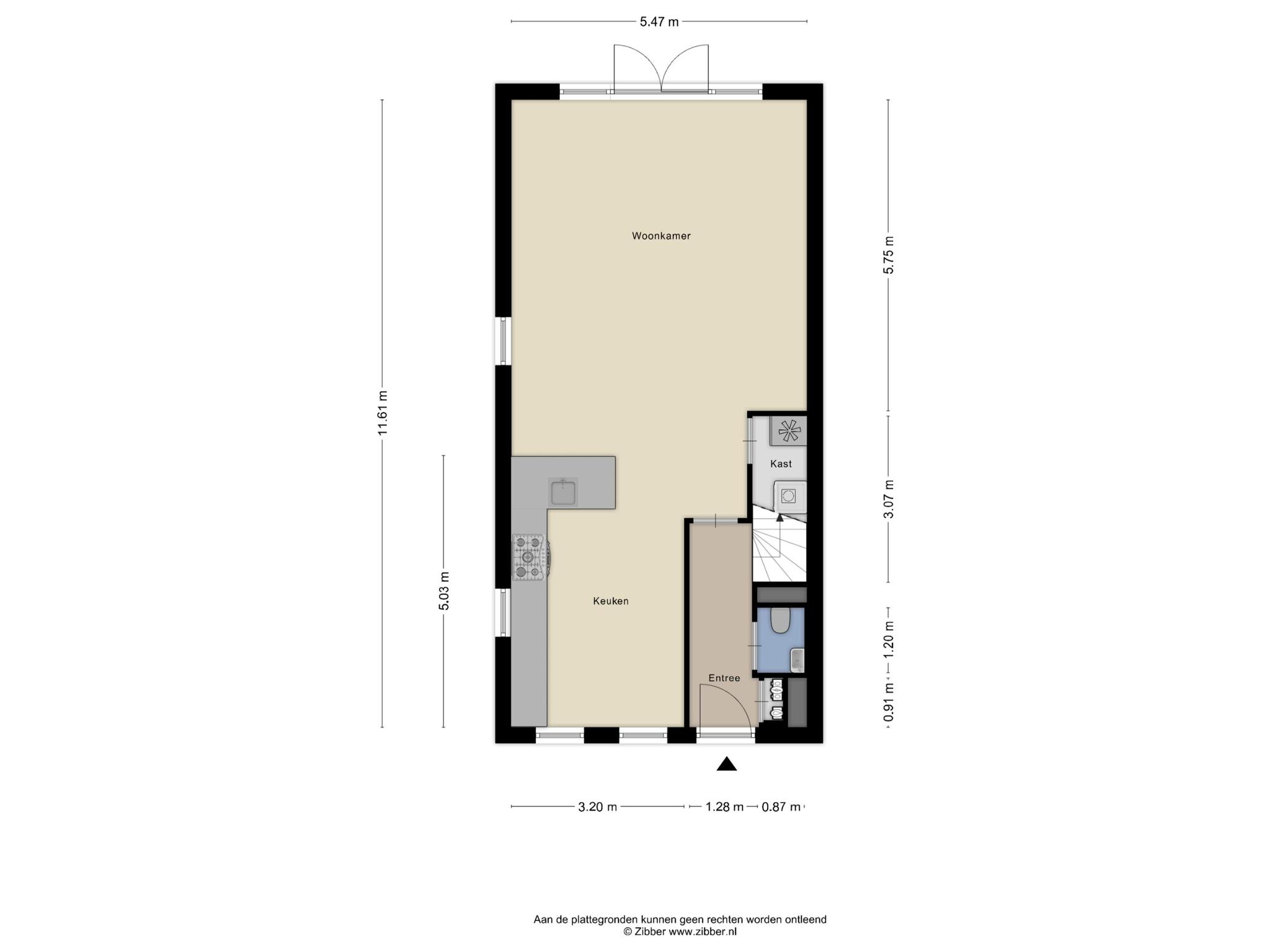 Indeling: Entree / hal met meterkast (8 groepen + dubbele groep + glasvezel) / uitgebouwde (2,40 m) woonkamer