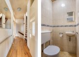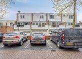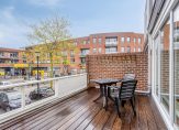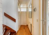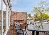 1e verdieping: Overloop met hardhouten trap naar 2e verdieping / toilet met fontein / ruime slaapkamer met nieuwe kunststof kozijnen met HR++ glas / lichte woonkamer met nieuwe kunststof kozijnen met HR++ glas en toegang tot het royale dakterras / keuken in hoekopstelling voorzien van keramische kookplaat, afzuigkap, vaatwasser, combimagnetron en koelkast / ruim dakterras met houten vlonder en vrij uitzicht.