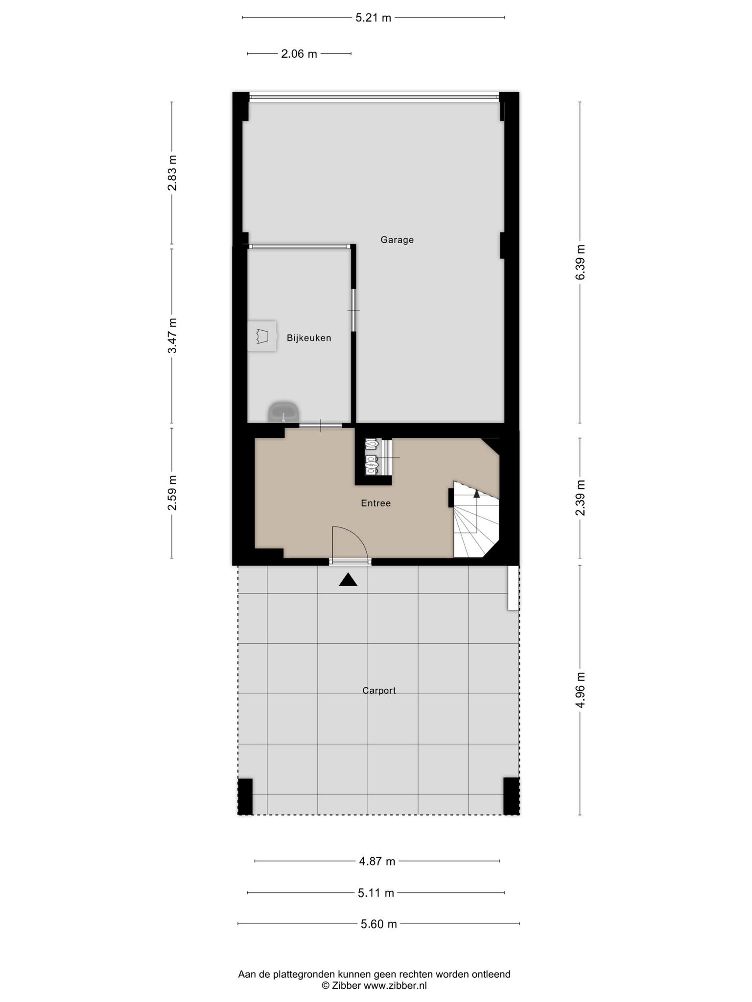 Indeling: Entree / ruime hal met garderobe ruimte en meterkast (5 groepen + aardlekschakelaar) / bijkeuken met boiler, vaste wastafel, verwarming en aansluitingen voor wasmachine en droger / grote garage met smeerput en elektrische overheaddeur, deze garage is ook vanaf de achterzijde van de woning bereikbaar.