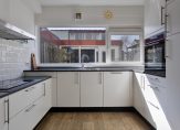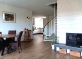 Indeling: Entree / hal met meterkast (9 groepen, 2x aardlekschakelaar, dubbele groep, glasvezel) / toilet met inbouwreservoir en fontein / keuken in hoekopstelling met granieten aanrechtblad voorzien van koel-vriescombinatie, vaatwasser, inductiekookplaat, oven en afzuigkap / ruime woonkamer met openhaard/kachel en een schuifpui naar de tuin / fraai aangelegde achtertuin met schitterend vrij uitzicht.