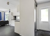 Binnenkomst via de hal met toegang tot alle vertrekken. De ruime en lichte woonkamer heeft openslaande deuren naar de overkapping en een heerlijk uitzicht op het groen. De open keuken is praktisch en compleet ingericht met o.a. inductiekookplaat, afzuigkap, koel-/vriescombinatie en vaatwasser.