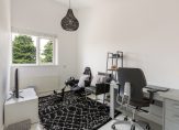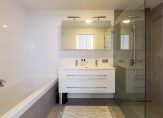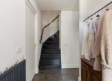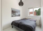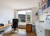 Via de trapopgang in de hal bereik je de eerste verdieping. Hier tref je in totaal drie slaapkamers en een moderne badkamer aan. Op dit moment zijn twee van de slaapkamers ingericht als respectievelijk wasruimte en werkkamer, maar uiteraard zijn ze eenvoudig weer als volwaardige slaapkamers te gebruiken. De derde slaapkamer wordt momenteel als hoofdslaapkamer gebruikt en is opvallend ruim en heeft inbouwkasten. Dankzij de brede raampartijen geniet je hier van een prettige lichtinval, wat de kamer een rustige en comfortabele uitstraling geeft. De badkamer is in 2022 gedeeltelijk vernieuwd en dat is goed te zien. De ruimte is modern afgewerkt met stijlvolle betegeling en voorzien van een ruime inloopdouche, een brede wastafel met luxe meubel. Er is een separaat toilet. Een slimme toevoeging is de schuifdeur in plaats van een openslaande deur – zo houd je op de overloop alle bewegingsvrijheid en benut je de ruimte optimaal.