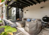 De achtertuin is fraai aangelegd en gelegen op het oosten. Dat betekent dat je hier ’s ochtends al vroeg kunt genieten van de eerste zonnestralen met een kop koffie, en dat je overdag volop profiteert van aangenaam licht. Dankzij de open ligging en de royale overkapping kun je ook later op de dag nog heerlijk buiten zitten, beschut en comfortabel – ideaal voor lange zomeravonden. De tuin grenst direct aan het water en biedt daarmee niet alleen een prachtig uitzicht, maar ook een rustige, groene sfeer. Of je nu wilt ontspannen in de loungehoek, tuinieren of gezellig buiten eten met vrienden en familie – deze buitenruimte biedt het allemaal. Aan praktische ruimte is ook gedacht: de woning beschikt over een ruime berging die je kunt gebruiken hobbyruimte of voor het veilig stallen van je fiets. Alles binnen handbereik en netjes uit het zicht.