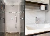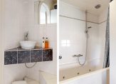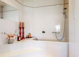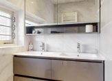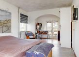 Een deur aan de linkerzijde in de hal geeft toegang tot een grote slaapkamer met inpandige bergruimte en met eigen badkamer en suite. De slaapkamer kan eventueel omgebouwd worden naar een tweede slaapkamer. De dubbele openslaande deuren geven toegang tot achtergelegen terras met overkapping.