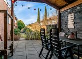 Het perceel heeft een oppervlak van ca. 318m2. De tuin rondom beschikt over meerdere terrassen waardoor elk moment van de dag een geschikte plek gevonden kan worden om te genieten. De veranda verlengt het buitenleven tijdens de regenachtige dagen. Verder is er de mogelijkheid voor het parkeren van meerdere auto’s op eigen terrein. Aan de achterzijde bevindt zich een extra berging en veranda.