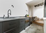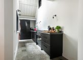 Keuken omgebouwd uit voormalige schuur naar moderne woonkeuken.