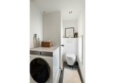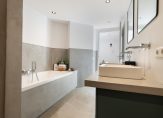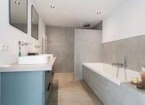 De eerste verdieping is tijdens dezelfde verbouwing geheel opnieuw ingedeeld. Hier vind je drie ruime slaapkamers, een aparte wasruimte met tweede toilet en een moderne badkamer met dubbele wastafel, ligbad en inloopdouche.