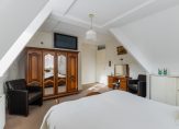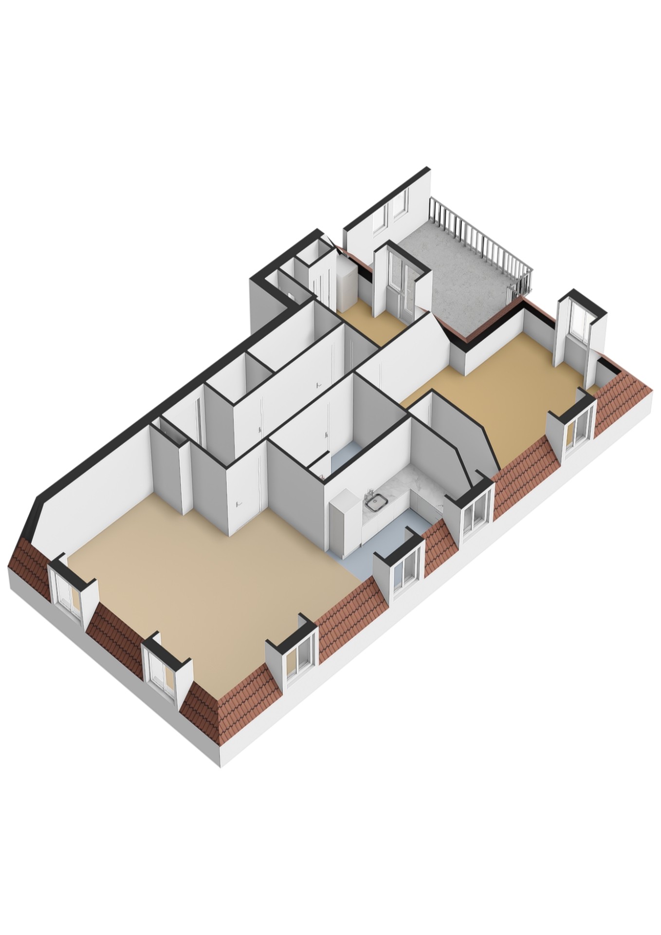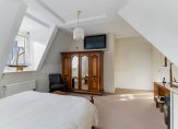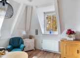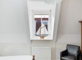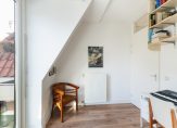 Op deze verdieping bevinden zich aan de achterzijde 2 slaapkamers en een inpandige badkamer. De grote slaapkamer heeft twee dakkapellen en een berging en de kleinere slaapkamer heeft toegang tot het balkon. Centraal in het appartement vind je de compleet betegelde badkamer met inloopdouche, tweede toilet en wastafel. Daarnaast is er een praktische inpandige berging met ruimte voor wasmachine, droger en de cv-ketel. De separate toiletruimte is handig bereikbaar via de hal.