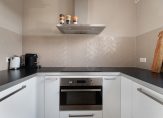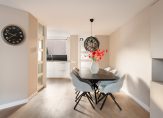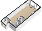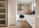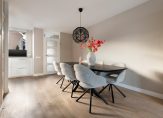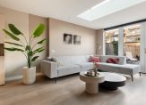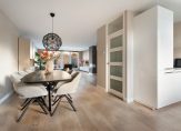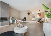 De woonkamer heeft een oppervlakte van circa [m²] en is voorzien van [bijzondere kenmerken: grote ramen, vloerafwerking, openslaande deuren]. De keuken is uitgevoerd in [stijl/kleuren] en beschikt over [inbouwapparatuur, werkblad, kastruimte]. De woon- en eetgedeeltes vormen samen een praktische en functionele leefruimte.
