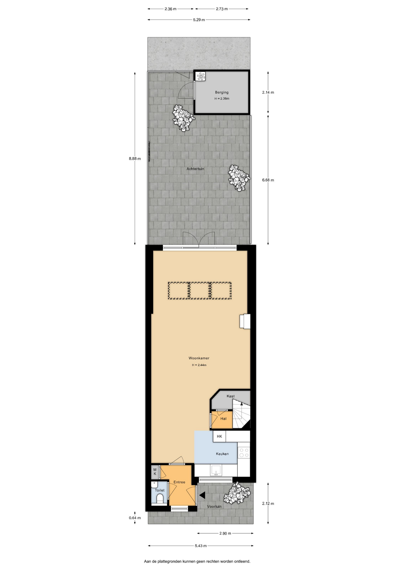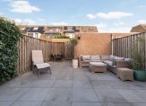De woning beschikt over een tuin op het [noorden/oosten/zuiden/westen] met een oppervlakte van circa [m²]. De tuin is aangelegd met [bestrating/beplanting/gazon] en voorzien van [berging, achterom, terras]. Daarnaast is er [parkeergelegenheid op eigen terrein/openbare parkeerruimte] aanwezig.