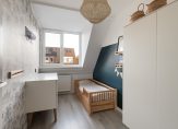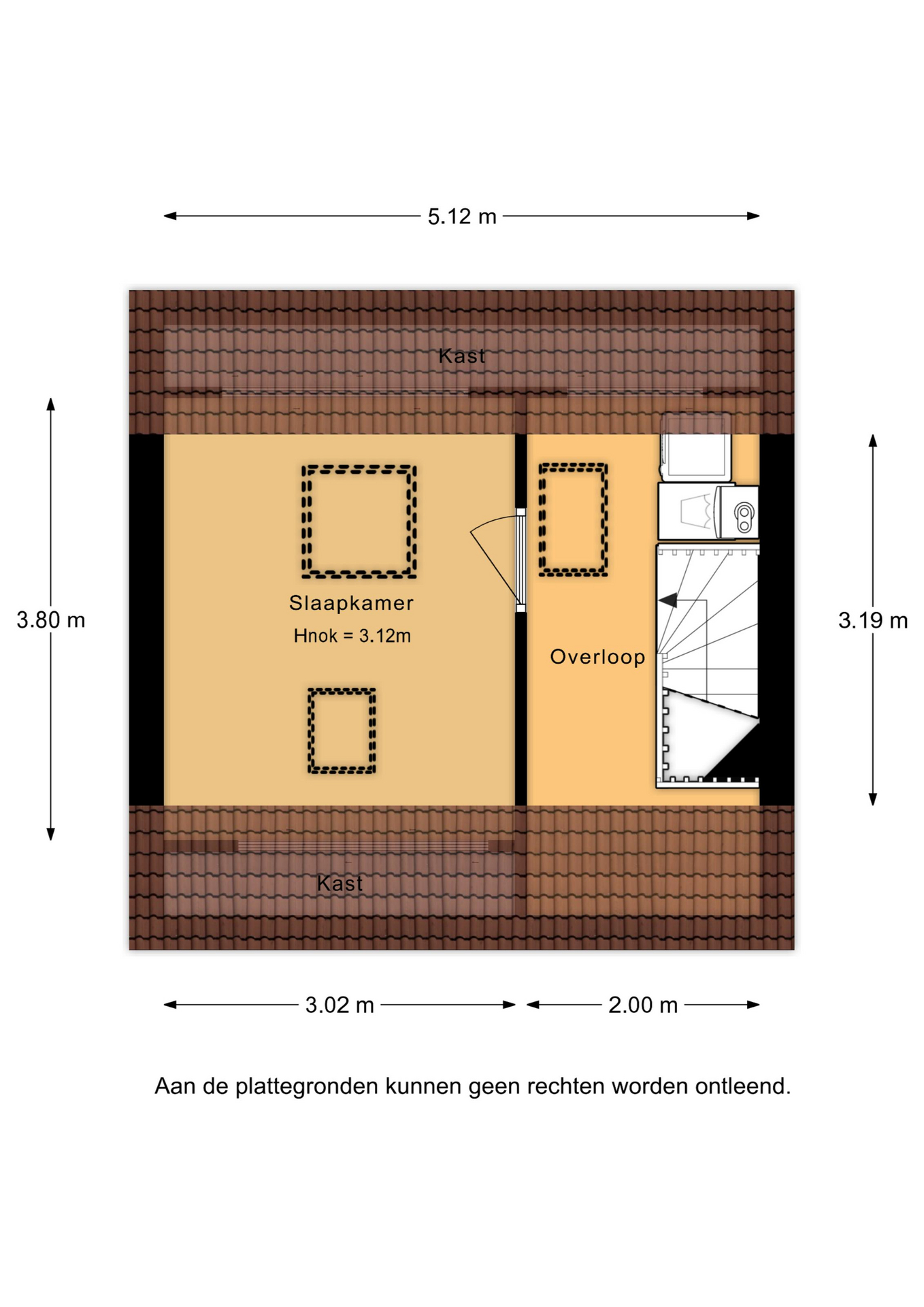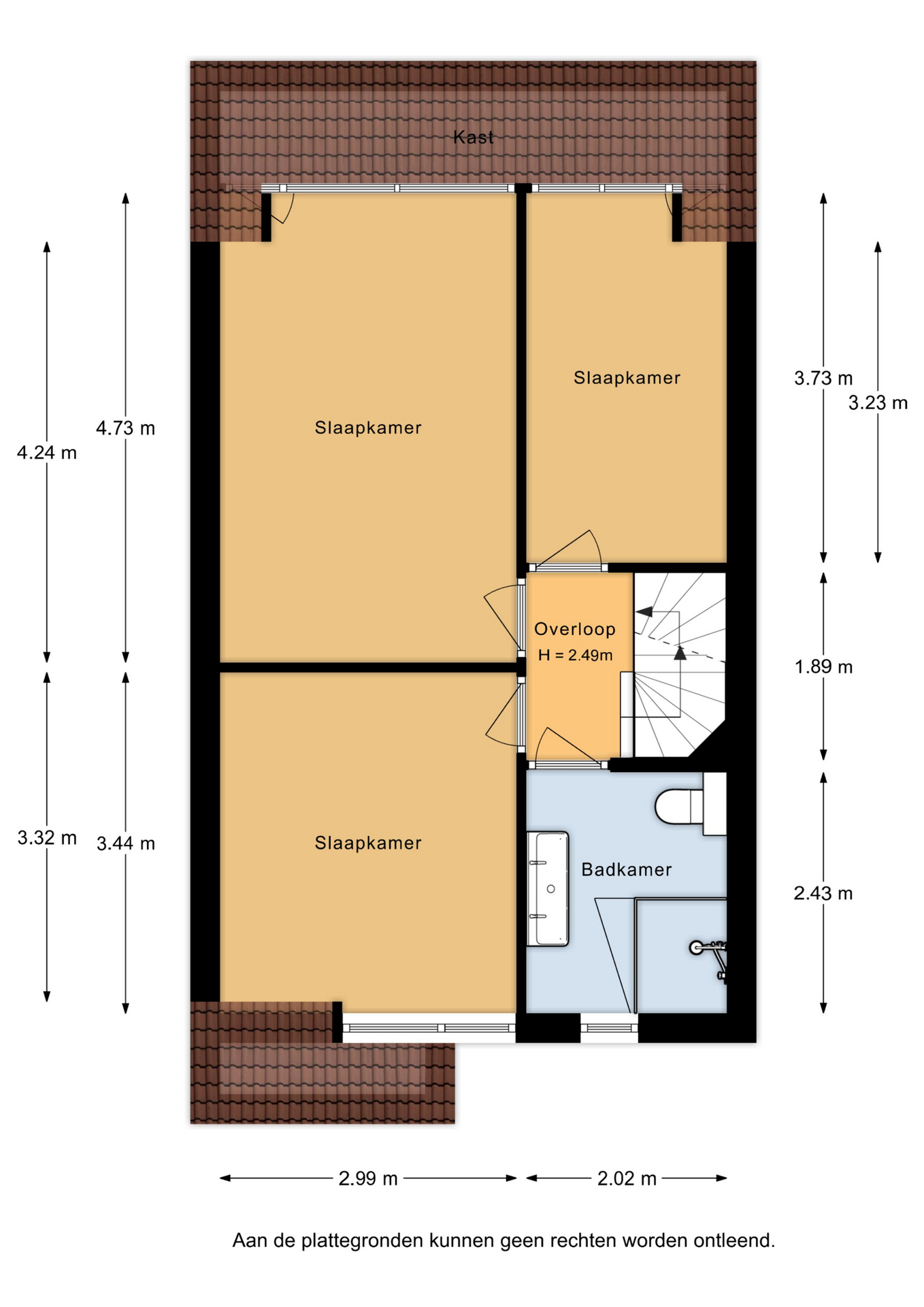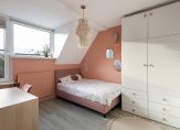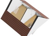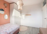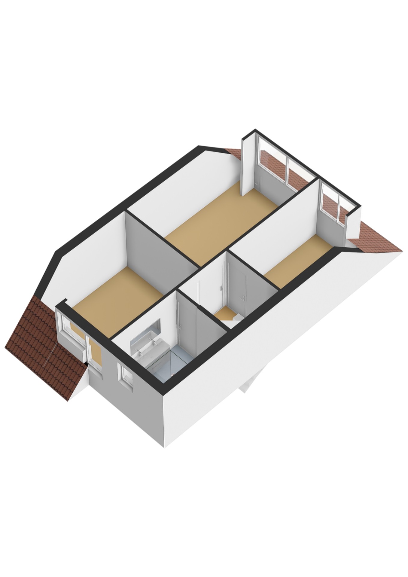 Op de verdieping bevinden zich [aantal] slaapkamers en een badkamer. De slaapkamers hebben oppervlaktes variërend van [m²] tot [m²]. De badkamer is ingericht met [douche, ligbad, wastafel, toilet] en is afgewerkt in [stijl/kleuren].