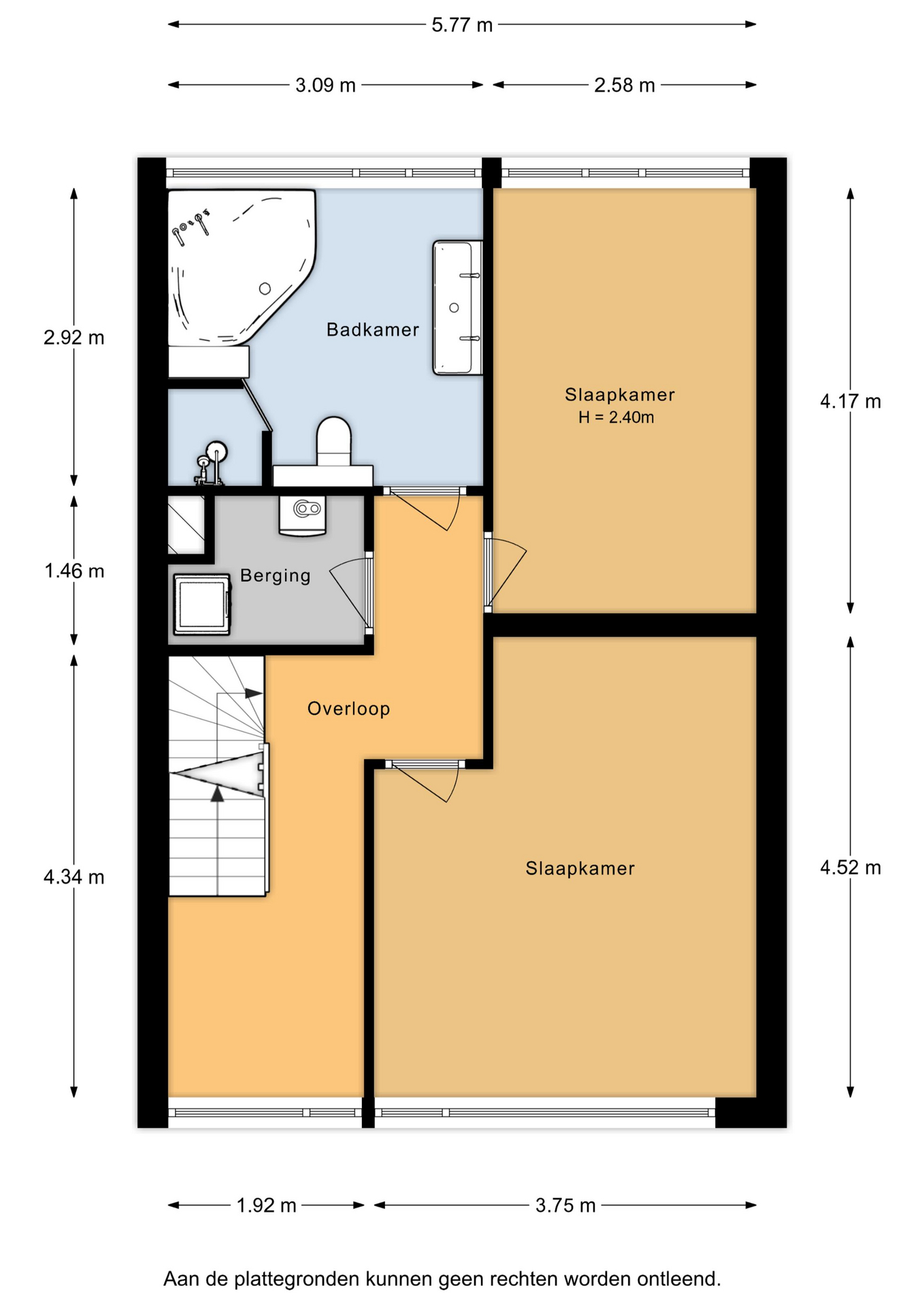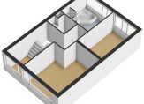 Op de eerste verdieping bevinden zich twee van de vier slaapkamers en de badkamer. De badkamer is voorzien van een ligbad, een toilet, een douche, een dubbele wastafel en een badkamermeubel. Ook is er een berging met wasmachine droger opstelling en de cv-ketel. De overloop heeft ook ruimte om een bureau te plaatsen om zo een thuiswerkplek te creëren. De tweede verdieping bevat nog eens twee slaapkamers, waarvan de slaapkamer aan de tuinkant echt groot is. Zowel de eerste verdieping als de tweede verdieping heeft mooi laminaat liggen.