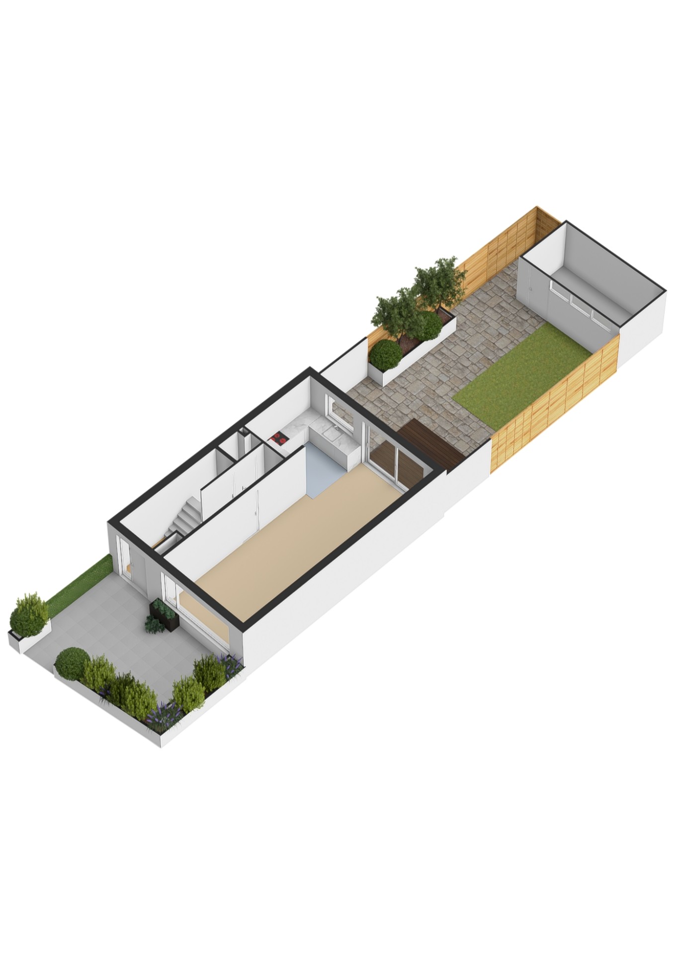 -Achtertuin met berging, achterom en speelgelegenheid direct achter de woning;