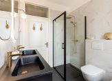 ^ Twee badkamers, waaronder een stijlvolle badkamer op de tweede verdieping die in 2023 is geplaatst