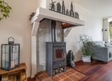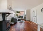 Via de voortuin stap je binnen in de hal met toegang tot het toilet en toegang tot het woongedeelte. Lichte doorzonwoonkamer met gezellige houtkachel en handige kelder met opbergruimte. De woonkamer staat in verbinding met de moderne open keuken, die is uitgebouwd en voorzien prachtig 6-pits gasfornuis inclusief oven, magnetron, vaatwasser en koel-vriescombinatie. Dankzij het extra daglicht via de lichtstraat en de achterpui is het hier heerlijk licht. Het automatische zonweringssysteem zorgt dat het ook op warme dagen comfortabel blijft.