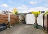 De zonnige tuin op het zuidwesten is onderhoudsvriendelijk aangelegd en voorzien van een stenen berging en achterom, ideaal voor fietsen of tuinspullen. Via de achterdeur stap je zo de onderhoudsvriendelijke achtertuin in, een fijne plek met veel privacy, een zonnige ligging, sierbestrating, stenen berging en een achterom.