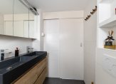 Op de eerste verdieping vind je twee ruime slaapkamers, waarvan de kamer aan de voorzijde is voorzien van een balkon. De badkamer is licht betegeld en uitgerust met een ligbad, dubbele wastafel met meubel, toilet en elektrische vloerverwarming.