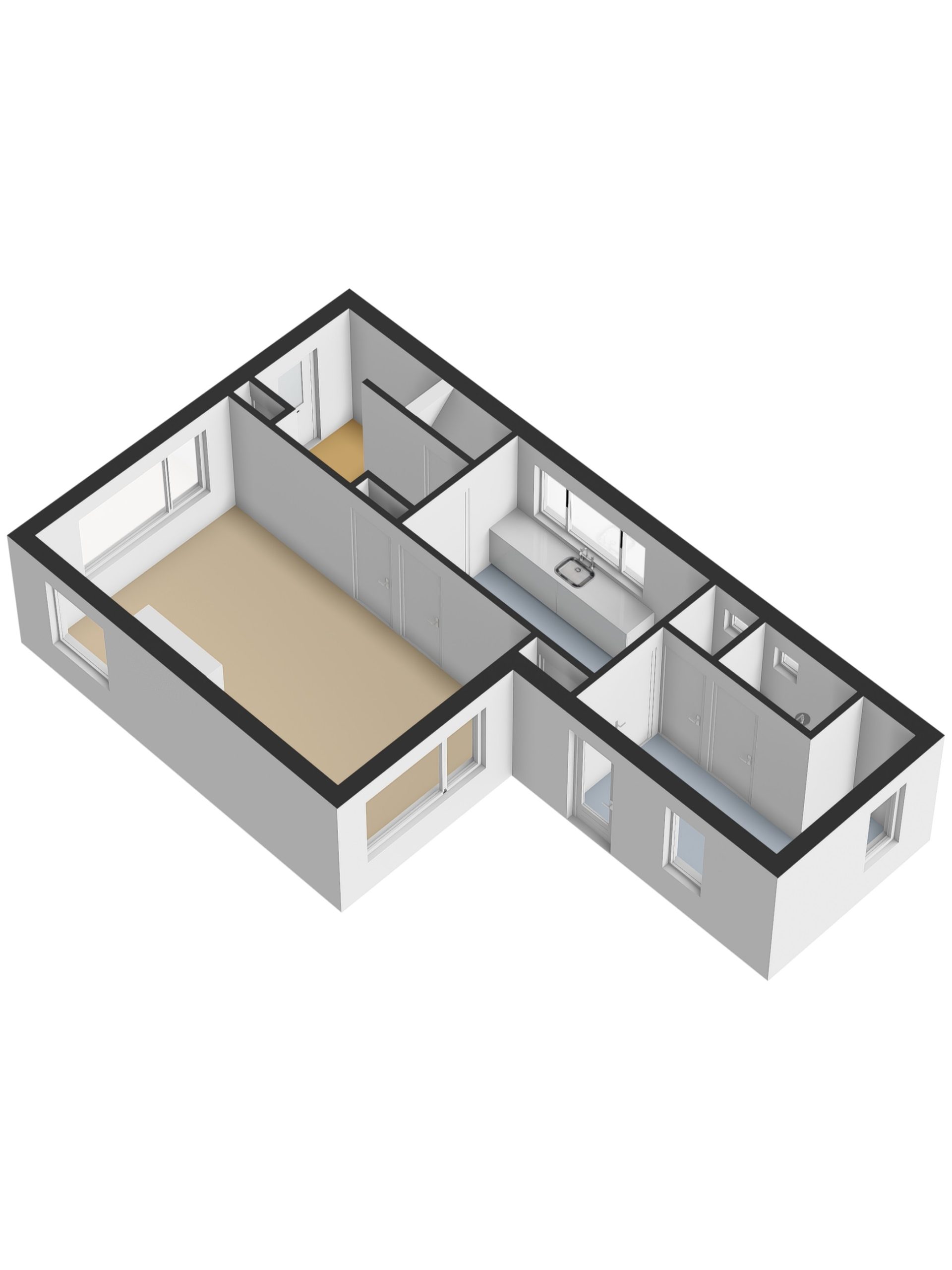 Slaapkamer III is circa 3,89 x 3,15 m en bevindt zich aan de achterzijde van de woning. Deze slaapkamer beschikt over een wastafel;