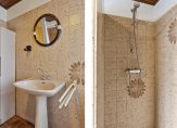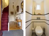 In de hal zie je direct dat dit een huis met sfeer is, mede dankzij de visgraat parketvloer en paneeldeuren. Op de trap ligt zacht, donkerrood tapijt en achter een van de deuren is een trap naar de wijn-/provisiekelder. De toiletruimte, met een wandcloset en fonteintje, is verrassend ruim.