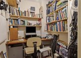 De ramen in de zijgevel zorgen voor lichtinval bij de trapopgang en op de overloop, wat het gevoel van ruimte vergroot. Ook op deze verdieping zijn de paneeldeuren behouden, strak in de lak. Naast de trap is een bergkast en aan de andere zijde is een inpandige werk-/studeerkamer.