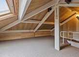 De grootste verrassing is de zolderkamer, te bereiken via een vaste trap. Deze ruimte is nu helemaal leeg, oorspronkelijk bedoeld als berging, maar met het aanbrengen van een groot dakraam eventueel nu ook is zeer geschikt als kantoor /werkplek of een tienerkamer. Het dakraam zorgt voor lichtinval en aan vier zijden is er bergruimte, voor de kerstdecoratie en de vakantiespullen.