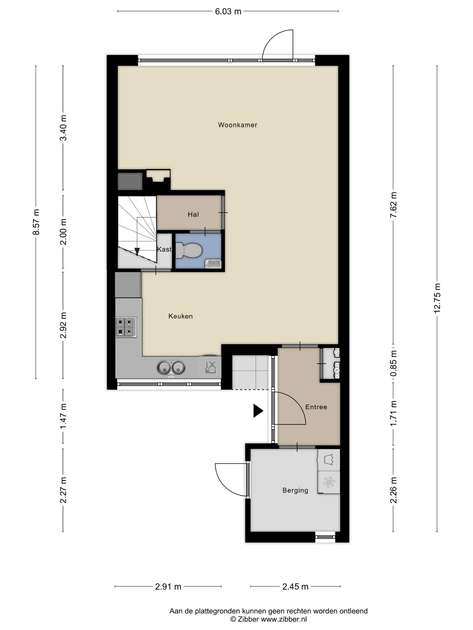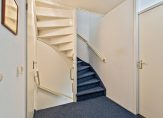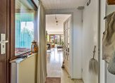 Als je de auto tegenover de garageboxen parkeert, dan is het maar een paar meter naar de voordeur. Ook aan de achterzijde is parkeergelegenheid, waarna je via de tuin naar de woning loopt. Maar we gaan nu via de voordeur, die toegang geeft tot de hal. Hier kun je rechtsaf naar de berging, die ook van buitenaf bereikbaar is. In de berging is ruimte voor de wasapparatuur, een koelkast en/of vriezer. Aan de andere kant van de hal, naast de meterkast, is een deur naar de woonkamer.