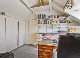 Een vaste trap geeft toegang tot de tweede verdieping met een overloop, vierde slaapkamer en meerdere bergingen. In een van de bergingen hangt de cv-ketel en de slaapkamer heeft een diepe kastenwand over de hele breedte van de kamer.