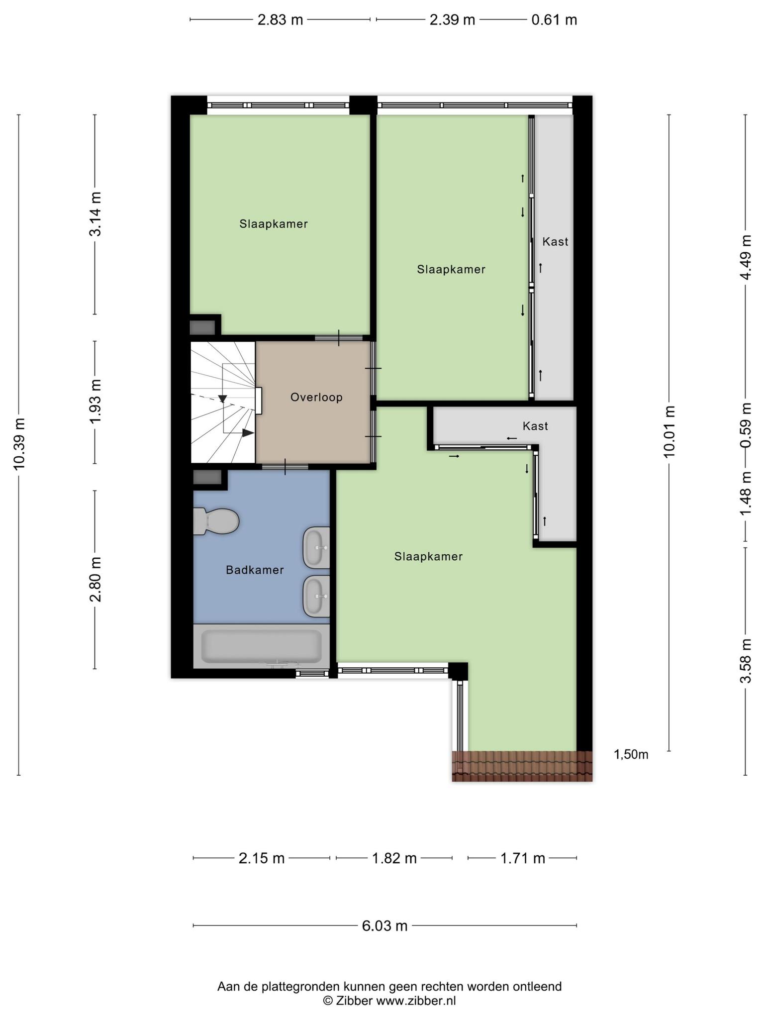 Als je de deuren op de overloop telt, dan weet je al snel dat er drie slaapkamers en een badkamer zijn. Aan de voorzijde is een ruime, L-vormige slaapkamer met een kastenwand en een leuke werk-/studeerplek. De tweede en derde slaapkamer, waarvan een met een bijna 4.50 meter lange kastenwand, zijn aan de achterzijde.