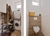 De entree van de woning is aan de achterzijde, dus loop via het pad naar de houten poort en dan de tuin in. In de hal zie je, aan de rechterzijde, de opstelling van de wasapparatuur en de toiletruimte met wandcloset. Naast de HR-ketel is ruimte voor een kapstok en een schoenenrek, dus hang je jas op en ontdekt de rest van deze fraaie woning!