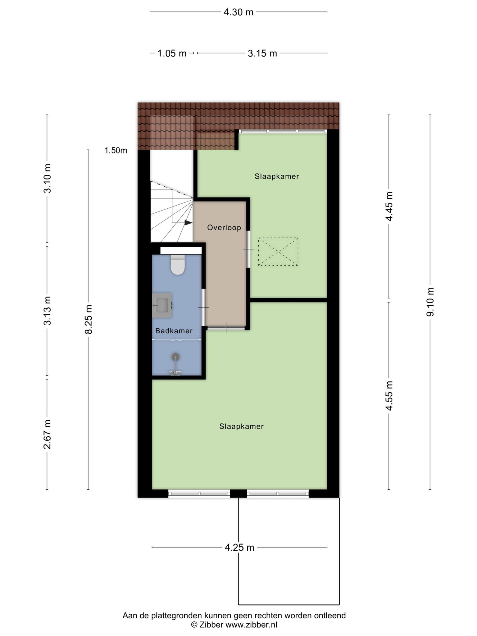 In de slaapkamer aan de voorzijde is een luik, die toegang biedt tot een bergzolder.