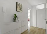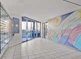 Staat de auto geparkeerd? Loop dan naar de entree van huisnummer 2 t/m 49, bij de blauwe ‘toren’. Aan de buitenzijde zijn het bellentableau, de intercom en de brievenbussen. Bij het appartement hoort een eigen (fietsen) berging op de begane grond, dus deze hoeft niet buiten te staan. In de centrale hal is een kleurrijk kunstwerk gemaakt en om het appartement, op de derde verdieping, te bereiken kun je kiezen tussen de trap of lift. Ga je snel mee naar boven?
