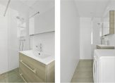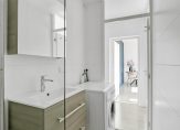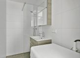 Er zijn nog twee ruimtes vanuit de hal te bereiken zijn. Dit zijn de toiletruimte en badkamer, die beiden in 2021 zijn vernieuwd. In de toiletruimte zijn grote, witte wandtegels gecombineerd met stucwerk en een wit wandcloset. De fraaie badkamer is ingedeeld met een inloopdouche, wastafelmeubel, spiegelkast en de wasmachineaansluiting.