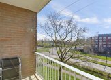 Vanuit de slaapkamer is het balkon te bereiken, gesitueerd op het zuidoosten. Je ziet veel groen en, achter de bomen, het begin van het Rosariumpark.