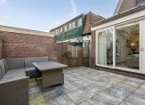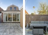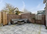 Open de schuifdeuren in de woonkamer en loop de geheel bestrate tuin in, gesitueerd op het noorden. Deze tuin biedt zowel zon als schaduw, en in de berging is ruimte voor de fietsen.