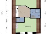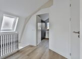 Het type dak van dit huis kent verschillende namen, waaronder mansardedak of gebroken kap. Het zorgt niet alleen voor een huis met een fraaie uitstraling, maar ook voor extra ruimte. Zo heeft deze woning twee ruime slaapkamers, een badkamer en een aparte toiletruimte op de bovenverdieping. Op bijna de hele verdieping ligt een pvc-vloer met houtpatroon en op diverse punten zijn de houten spanten zichtbaar.
