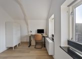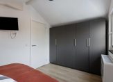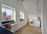 Aan de achterzijde is de master bedroom, met genoeg plek voor een tweepersoonsbed en een grote garderobekast. De slaapkamer aan de voorzijde is in gebruik als werkkamer en wasruimte. In beide kamers kijk je tot in de nok en wandairco’s (koelen/verwarmen) zorgen het hele jaar voor een aangename temperatuur.