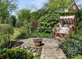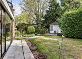 Dit geweldige huis wordt aan drie kanten omringd door een royale tuin, waarbij de achtertuin op het zuidoosten gesitueerd is. Maar we beginnen voor, waar genoeg plek is om op eigen terrein te parkeren. In de voortuin zie je veel groen en aan de linkerzijde staat een hoge, groenblijvende haag.