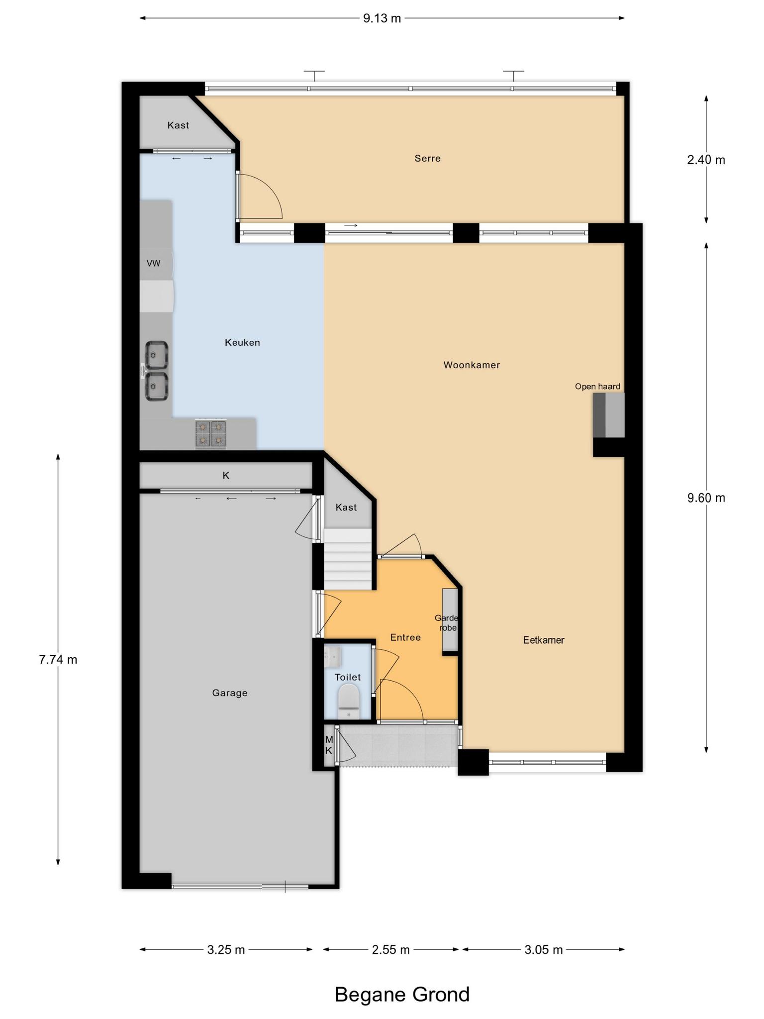 De inpandige garage is van goed formaat, met een lengte van 7.74 meter en een minimale breedte van 3.25 meter. Aan de achterzijde staat een kastenwand met schuifdeuren en als er een auto binnen staat, is er nog genoeg plek voor de (kinder)fietsen. Met tegels op de vloer, spouwmuren en een elektrisch bedienbare garagedeur is dit een geweldige ruimte!