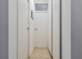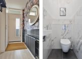 Via de galerij loop je naar de voordeur van huisnummer 94, wat zomaar jouw nieuwe (t)huis kan worden. Open de voordeur en loop de hal in, die uit twee delen bestaat. Hier zie je direct dat dit appartement op een fraaie wijze is verbouwd, waardoor je al snel kan beginnen met inrichten. De eerste indruk is sfeervol met de combinatie van zwarte wandtegels en kleurrijk bloemetjesbehang, in het eerste deel van de hal.
