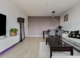De woon-/eetkamer bevindt zich aan de zuidwestkant, met het fijne zonnetje dat al vanaf het begin van de middag naar binnen valt. Er is genoeg plek voor een grote hoekbank, tv-meubel en een eettafel. En vergeet niet van het uitzicht te genieten, want dat is werkelijk fantastisch!