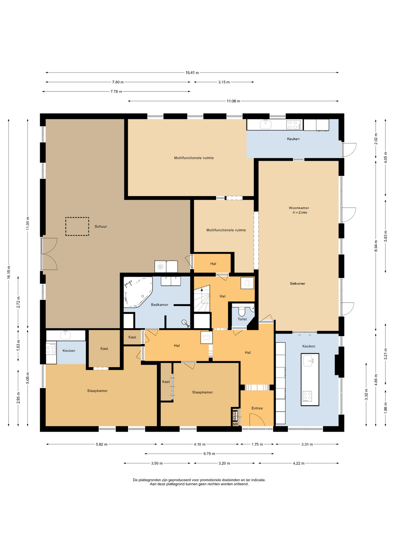 – een keuken in combinatie met een multifunctionele ruimte,