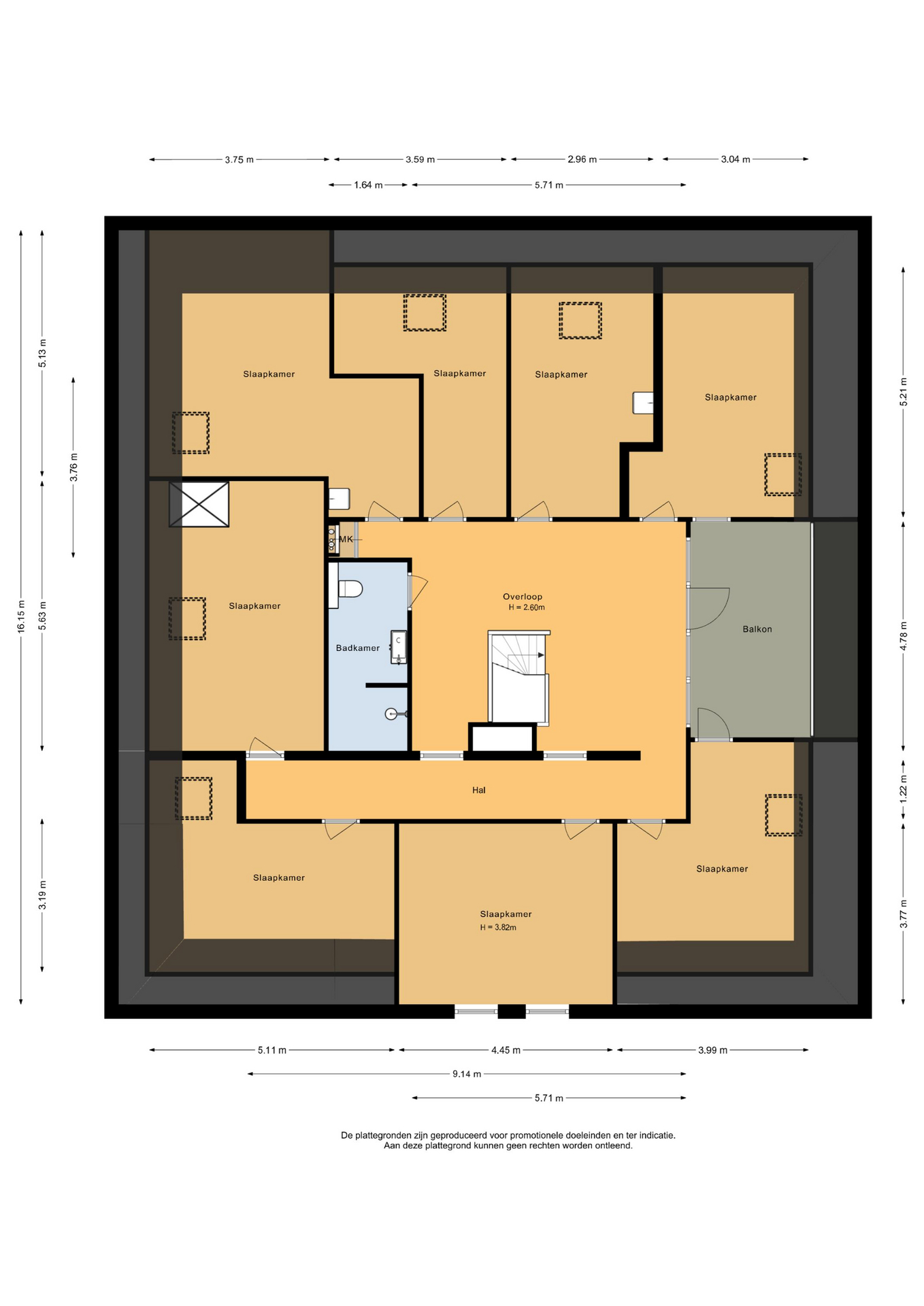 De vaste trap brengt je naar de eerste verdieping, waar de ruimte zich opnieuw laat gelden. Hier bevinden zich de resterende acht slaapkamers, allemaal bereikbaar vanaf de royale overloop. Dankzij de slimme indeling voelt deze verdieping overzichtelijk en licht aan. De overloop biedt bovendien toegang tot een breed balkon, waar je heerlijk buiten kunt zitten en genieten van het vrije uitzicht. Naast de overloop heeft ook één van de slaapkamers directe toegang tot dit balkon. Een fijne extra die binnen en buiten mooi met elkaar verbindt.