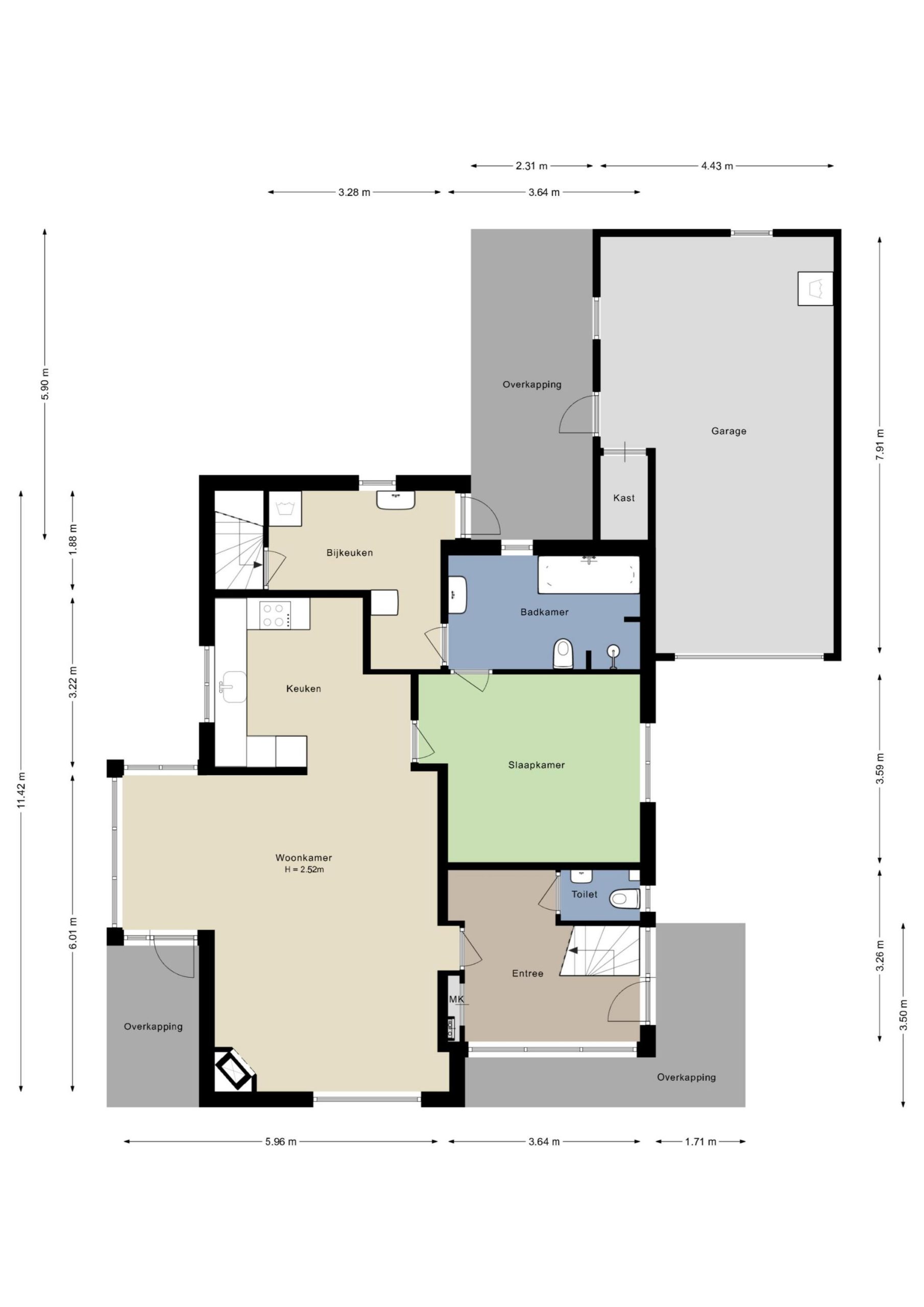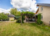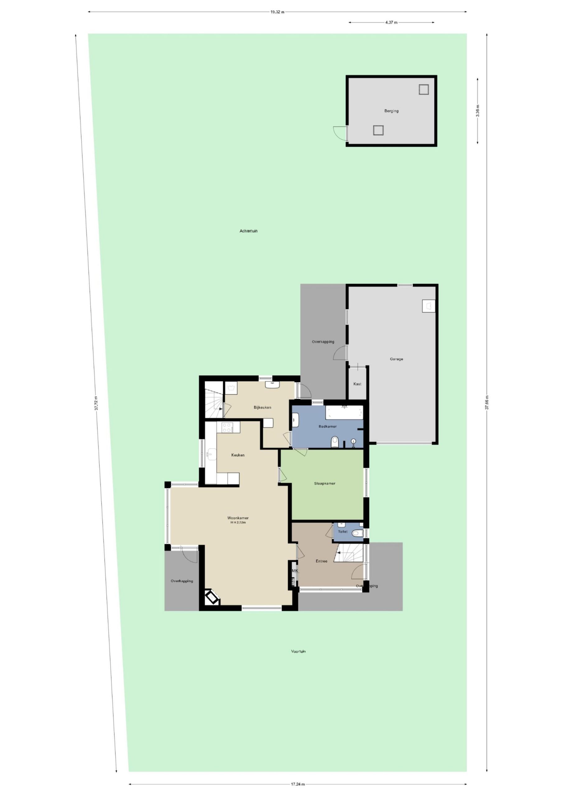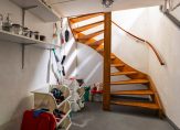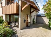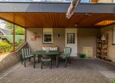 De aangebouwde, bijna 8 meter lange garage is eenvoudig te bereiken via de buitendeur in de bijkeuken. Zo loop je overdekt naar de deur van de garage, die genoeg ruimte biedt om de auto, fietsen en andere spullen binnen te zetten.