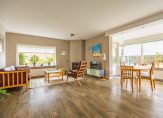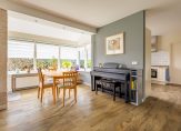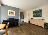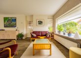 De woonkamer is een lichte en goed in te delen leefruimte met een grote erker aan de zonnige zuidwestkant. Sfeermaker bij het zitgedeelte is de inbouwhaard met, net als in de hal en toiletruimte, marmer als afwerking. Vergeet niet om van het uitzicht te genieten, vanaf de bank en bij het eetgedeelte.